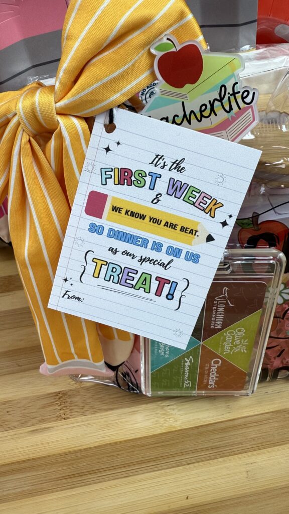 After all, after a full day of teaching, the last thing they want to do is cook. This little bundle says, We see you. We appreciate you. Go enjoy dinner on us!